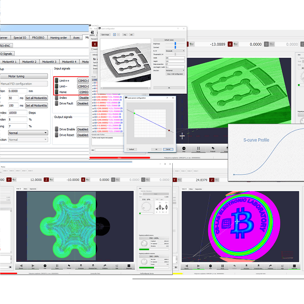 • Macros – you can control all digital and analog signals using Visual Basic (Mach3), Lua (Mach4), Python (simCNC) macros.