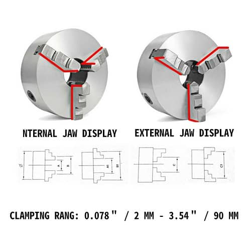 This versatile chuck is made of high-quality hardened steel, resistant to compression and has a long service life. It has two sets of jaws that can hold industrial parts in the range of 0.078" / 2 mm - 3.54" / 90 mm. Of course, this chuck self-centering function can save the trouble of repeated calibration during installation. This chuck is easy to install and easy to operate. It is suitable for all kinds of general-purpose lathes, economical CNC lathes, grinding machines, milling machines, drilling machines, and machine tool accessories.
